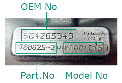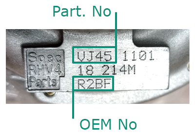 Для того, чтобы правильно подобрать турбокомпрессор для вашего автомобиля, нужно узнать оригинальный номер детали («Part Number») производителя турбокомпрессора. Оригинальный номер можно найти на пластине или на корпусе компрессорной части турбокомпрессора.